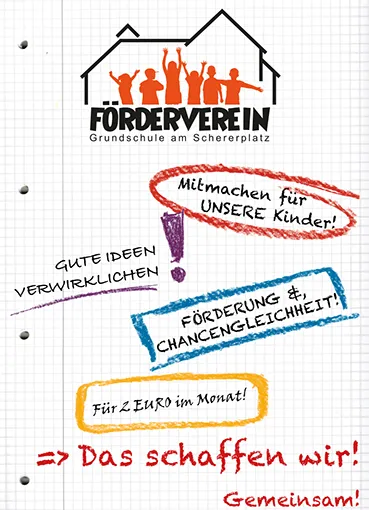 Der gemeinnützige "Förderverein Grundschule am Schererplatz" bietet und unterstützt zahlreiche Projekte die ausschließlich den Kindern zu Gute kommen.