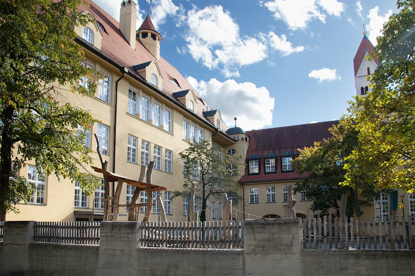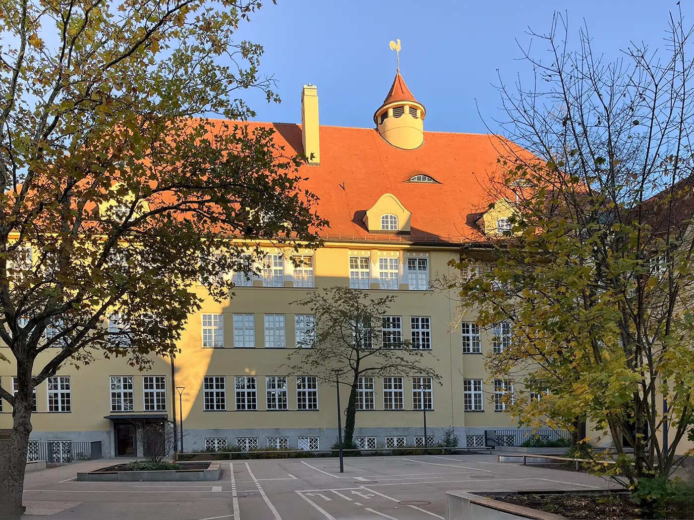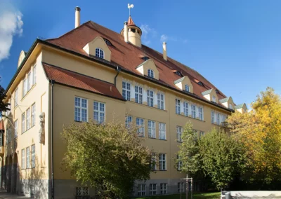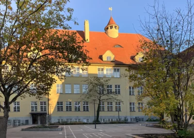 Ab 2012 gab es umfangreiche Sanierungsarbeiten an der denkmalgeschützten Grundschule am Schererplatz 3.