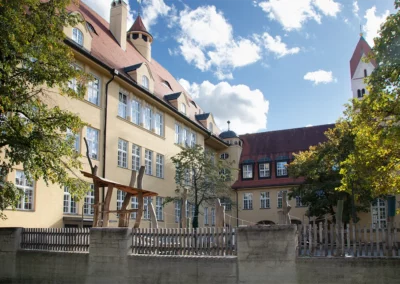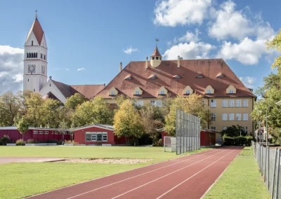 Im Jahr 1958 wurde die Doppelturnhalle am Schererplatz 6 eingeweiht. Fünf Jahre später, also 1963, zog das Gymnasium zurück in sein altes Schulhaus am Stadtpark.