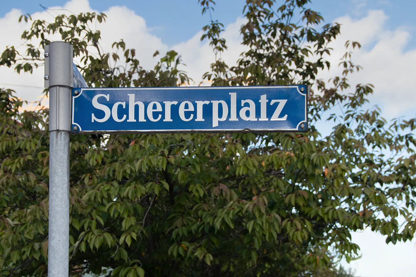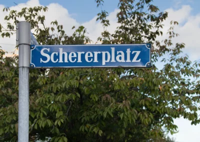 Die Grundschule am Schererplatz ist nach dem Sprachforscher und Wissenschaftler der deutschen Sprache, Wilhelm Scherer, benannt. Er lebte von 1841 bis 1886. Diesen Namen erhielt die Schule im Jahre 1948. Die Schererschule gibt es aber schon viel länger.
